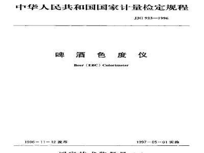 JJG 923-1996 啤酒色度仪检定规程 JJG923-1996 标准下载解压密码:www.bzxz.net