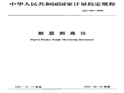 JJG 929-1998 数显测高仪 JJG929-1998 标准下载解压密码:www.bzxz.net