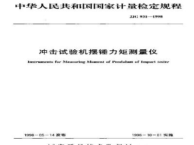 JJG 931-1998 冲击试验机摆锤力矩测量仪 JJG931-1998 标准下载解压密码:www.bzxz.net