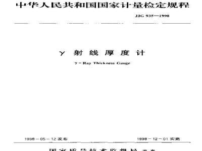 JJG 935-1998 Υ射线厚度计 JJG935-1998 标准下载解压密码:www.bzxz.net