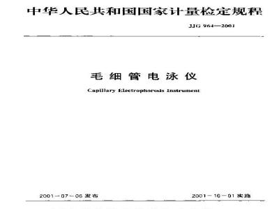 JJG 964-2001 毛细管电泳仪检定规程 JJG964-2001 标准下载解压密码:www.bzxz.net