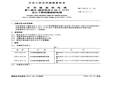 本标准规定了额定电压0.66/1.14kV移动橡套软电缆产品品种、技术要求、试验方法和检验规则。本标准适用于额定电压0.66/1.14kV及以下移动设备用铜芯橡皮绝缘橡皮护套软电缆。本标准应与GB l2972.1一起使用。 GB 12972.5-1991 矿用橡套软电缆 第5部分:额定电压0. 66/1.14 kV及以下移动橡套软电缆 GB12972.5-1991 标准下载解压密码:www.bzxz.net