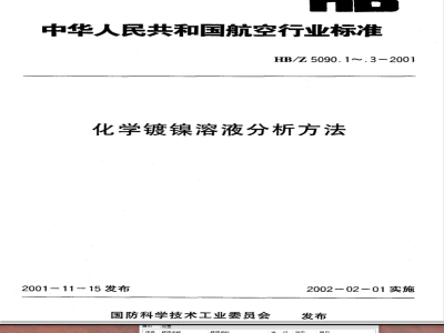HB/Z 5090.1-2001 化学镀镍溶液分析方法 EDTA容量法测定硫酸镍(或氯化镍)的含量 HB/Z5090.1-2001 标准下载解压密码:www.bzxz.net
