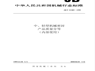 JB/T 53389-1999 中、轻型机械密封 产品质量分等 JB/T53389-1999 标准下载解压密码:www.bzxz.net