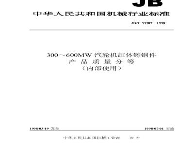 JB/T 53507-1998 300~600MW汽轮机缸体铸钢件 产品质量分等 JB/T53507-1998 标准下载解压密码:www.bzxz.net