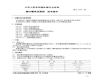 本标准规定了精密冲裁模具油基润滑剂的技术要求、试验方法、使用要求及贮运包装。 JB/T 7714-1995 精冲模具润滑剂 技术条件 JB/T7714-1995 标准下载解压密码:www.bzxz.net