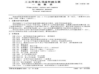 GB/T 11918-1989 工业用插头插座和耦合器 一般要求 GB/T11918-1989 标准下载解压密码:www.bzxz.net