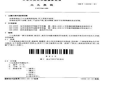 本标准规定了三九条码的结构、尺寸及技术要求。本标准适用于运输、仓贮、工业生产线、图书情报、医疗卫生等领域的自动识别。 GB/T 12908-1991 三九条码 GB/T12908-1991 标准下载解压密码:www.bzxz.net