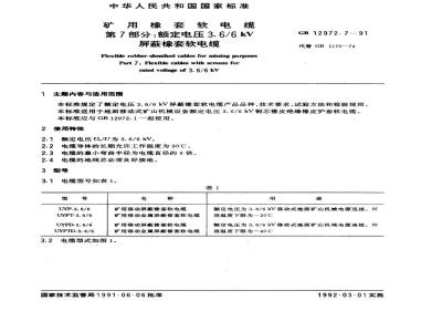 本标准规定了额定电压3.6/6kV屏蔽橡套软电缆产品品种、技术要求、试验方法和检验规则。本标准适用于地面移动式矿山机械设备额定电压3.6/6kV铜芯橡皮绝缘橡皮护套软电缆。本标准应与GB 12972.1一起使用。 GB 12972.7-1991 矿用橡套软电缆 第7部分:额定电压3. 6/6 kV屏蔽橡套软电缆 GB12972.7-1991 标准下载解压密码:www.bzxz.net