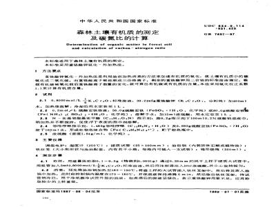 GB 7857-1987 森林土壤有机质的测定及碳氮比的计算 GB7857-1987 标准下载解压密码:www.bzxz.net