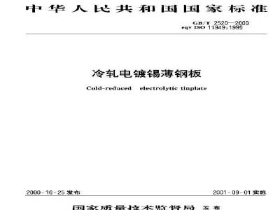 本标准规定了冷轧电镀锡板的分类和表示方法、尺寸和外形允许偏差、技术要求、检验、包装和发货等。本标准适用于以板状和卷状供货的低碳钢一次冷轧和二次冷轧电镀锡板。 GB/T 2520-2000 冷轧电镀锡薄钢板 GB/T2520-2000 标准下载解压密码:www.bzxz.net