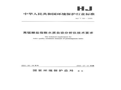 HJ/T 100-2003 高锰酸盐指数水质自动分析仪技术要求 HJ/T100-2003 标准下载解压密码:www.bzxz.net