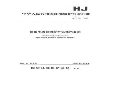 本 技 术 要求规定了地表水、工业污水和市政污水的基于电极法和分光光度法的氨氮水质自动分析仪的技术性能要求和性能试验方法,适用于该类仪器的研制生产和性能检验。 HJ/T 101-2003 氨氮水质自动分析仪技术要求 HJ/T101-2003 标准下载解压密码:www.bzxz.net