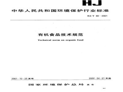 HJ/T 80-2001 有机食品技术规范 HJ/T80-2001 标准下载解压密码:www.bzxz.net