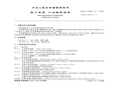 本标准规定了小功率电动机的专用术语。本标准适用于制订标准、编制技术文件、编写和翻译专业手册、教材及书刊,供从事电工和相关专业工作的生产、科研、应用和教学等有关部门的人员使用。 GB/T 2900.27-1995 电工术语 小功率电动机 GB/T2900.27-1995 标准下载解压密码:www.bzxz.net