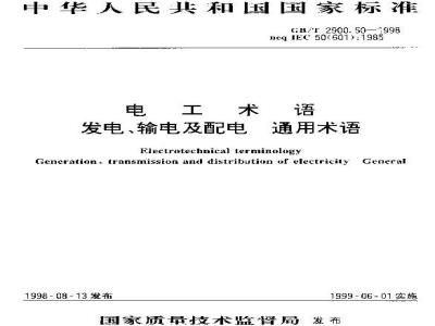 Electrotechnical terminologyGeneration. transmission and distribution of electricity General1998-08-13发布