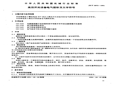 本标准规定了额定电压3kV及以上高压开关设备用的电气图形符号和相应的文字符号。本标准适用于高压开关设备电气图的绘制。2引用标准