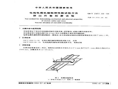 本标准规定了挤出外套刮磨试验的试验设备、试样制备、试验步骤和试验结巢。本标准适用于试验电缆外径30mm及以上的塑料外套的耐刮磨性能。电线电缆机械物理性能试验的一般规定、定义和试验设备的定期校验等规定在GB/T2951.上中。引用标准