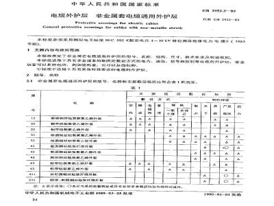 电缆外护层非金属套电缆通用外护层Protcctive coverings for electric cablesGeneral protcctive caverings for cables with non-mctallie sheathGB 2952.3—89