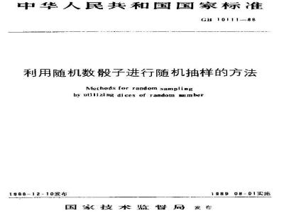 本标准规定了利用随机数骰子获得随机数并据以进行简单随机抽样的方法。本标准适用于各种领域中的抽样调查和产品质量的抽样检查。 GB 10111-1988 利用随机数子进行随机抽样的方法 GB10111-1988 标准下载解压密码:www.bzxz.net