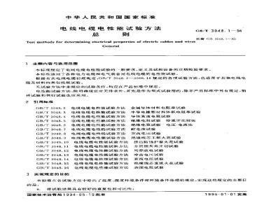 本标准规定了电线电缆电性能试验的…-般要求定义及试验设备的定期校验要求。本标准适用丁各种电力电缆和电气装备用电线电缆的电性能试验,根据有关电线电缆标准规定,GB/T3048.2~3018.16规定的各项试验方法.也适用于其他电线电缆及材料的类似性能试验。