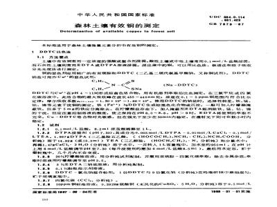 Determination of available copper in forest soil本标准适用于森林土壤微量元素分析中有效铜的测定。1DDTC比色法