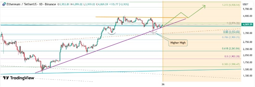 以太坊坚守关键支撑位并准备启动新一轮上涨,目标5,900美元。来源:Kiu_Coin on TradingView