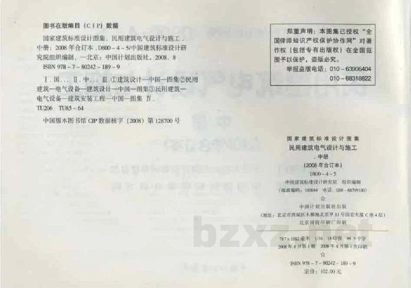 标准图集名称:民用建筑电气设计与施工 中册(2008年合订本)